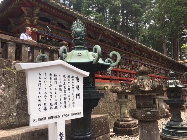 私は今から30年以上前に職場の旅行で日光東照宮を訪れたことがあり、それ以来です。長い年月が経って私の記憶がモノクロームに色褪せてしまっているのかもしれませんが、平成大修理が進んでいる真っ最中からかもしれませんが、久し振りに訪れた日光東照宮は色鮮やかで、圧倒されるほどでした。白黒テレビからいきなりハイビジョンのカラーテレビに買い替えた時のような感動とでも言えばいいでしょうか(@_@)