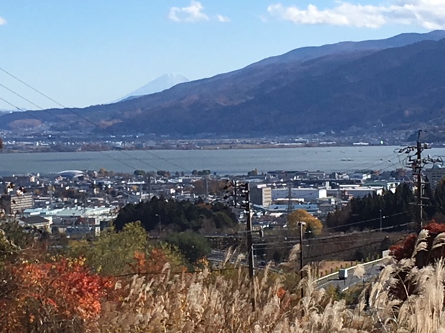振り返ると諏訪湖が見えます。